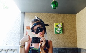 In Bali kozen we random een guesthouse uit en werden daar met open armen ontvangen. Een meloensapje, ander vers fruit, vriendelijke gezichten. De plaats heet Pemuteran en is aan de kust, landschap weer heel anders, hindoeïstische beelden, felle zon. Dit eiland van Indonesië is weer zo een andere wereld. We waren kapot. De volgende dag huurde ik een snorkeltje en ging de zee in. Nog geen tien stappen verder het gezondste koraal dat ik ooit heb gezien. Zoveel kleur. Heel veel vissen met nog meer kleur. Nemo’s gespot. Ik verbaasde me over het feit dat er nauwelijks toeristen waren. Leek een niet ontdekte plek. Ben een tijdje met een vis meegezwommen met ongelofelijke kleuren en een onderbeet en werd zelf gevolgd door een andere.