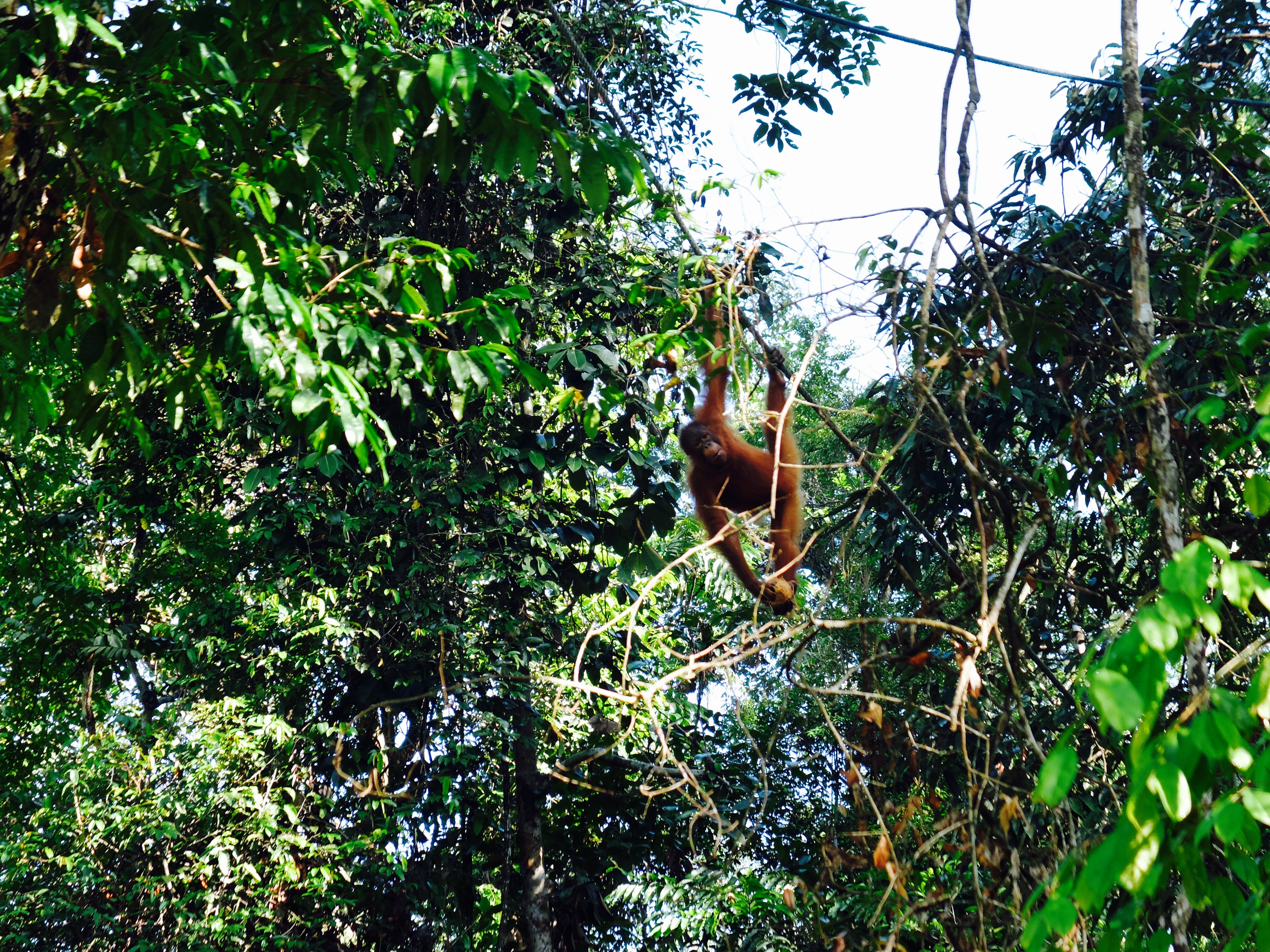 Ik ben naar het orang-oetang wildlife rehabilitation centre gegaan, wat nogal een uitdaging was. Heel vroeg opstaan en hopen dat de bus kwam. In deze tijd van het jaar is het erg moeilijk om de oerangs ook daadwerkelijk te spotten omdat het woud vol is met vers fruit en ze daarom niet naar de begaanbare paden komen. Maar… ik heb ze gespot en ze waren heel dichtbij. Wat een wezens, ze lijken zo ontzettend op mensen. Ik was er erg van onder de indruk. Een vrouwtje stopte langs de weg en pikte me op, zomaar. Later die dag liet ik mijn camera fixen (na de val bij de Ijen was de zonnekap flink naar de graf) en at ik heerlijk bij een lokale warung waar ik elke dag twee keer terug kwam. Voelde me het gelukkigste meisje op aarde.