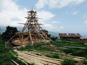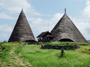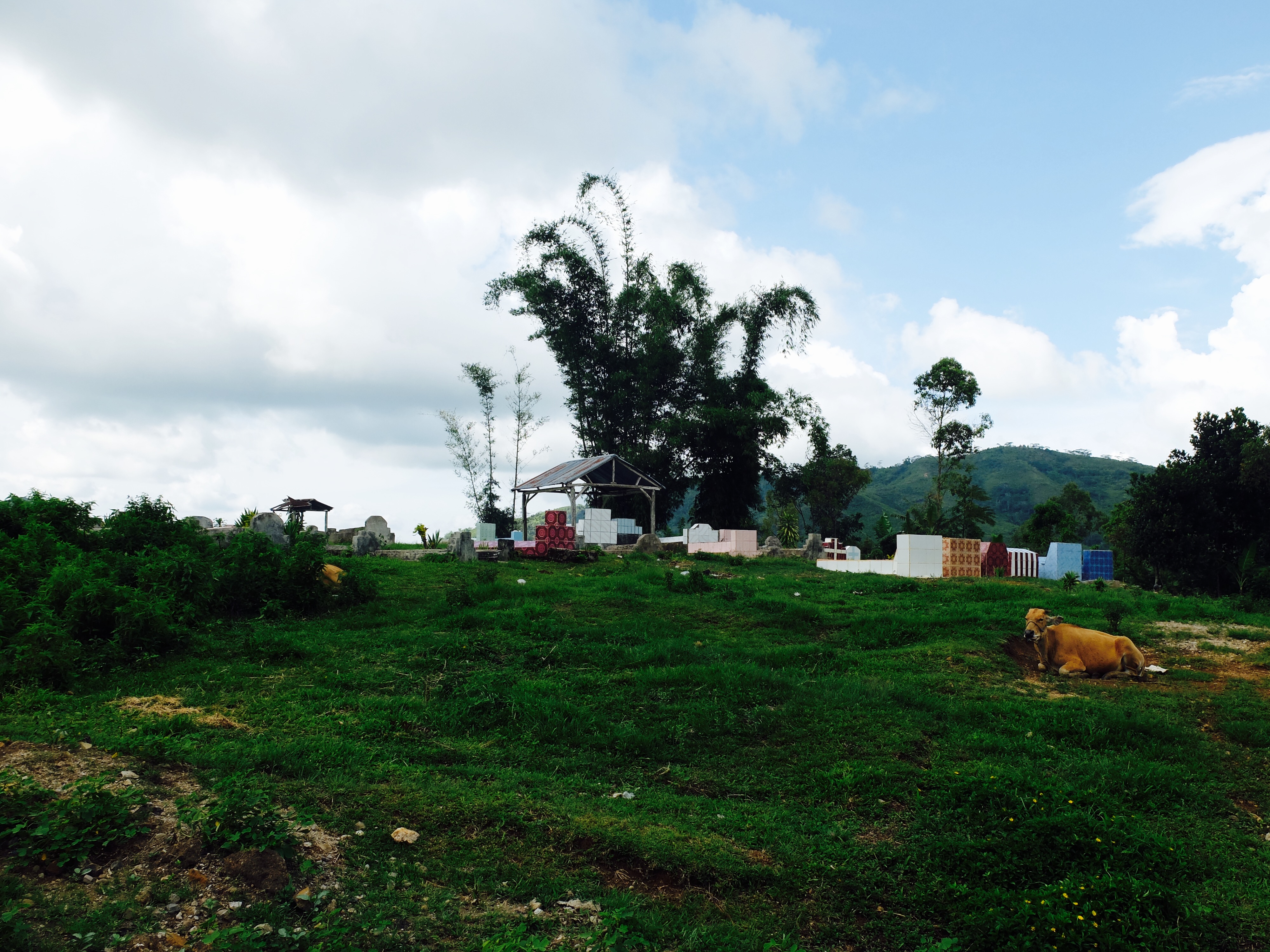 Na een pittige busrit door de jungle met prachtige panoramaas met rijstvelden en nog veel meer, kwamen we aan in Ruteng een klein dorpje. Kouder klimaat, laaghangende wolken in de bergen, mensen met mutsen. Fantastisch anders. We dronken de beste koffie die ik ooit heb gehad, uitgezonderd die van mama, bij onze vriend Boni en zijn Javaanse vrouw. Ze hielpen ons met alle informatie die we wilden hebben en hebben zoveel hart voor hun land. Dezelfde dag huurden we een scooter om naar het spinnenweb rijstveld te gaan. De weg erheen was de mooiste in zijn categorie, wat ik tot nu toe heb gezien. We stopten vaak om fotoos te maken en ik was zo gelukkig. De dunne hoge palmboompjes, graven van overledenen in de voortuin, de fluffy wolken op de vulkanen en de mensen met rode monden door het eten van een bepaalde noot blijven me bij. ‘Mister, mister hallo!’ We hadden een recorder nodig, zo vaak moesten we groeten. Maar wat fantastisch, nog zo puur. Het spinnenweb rijstveld was prachtig, net een view vanuit een luchtballon. Mensen werkten met hun buffels op het land en ploegden het land om in het water.