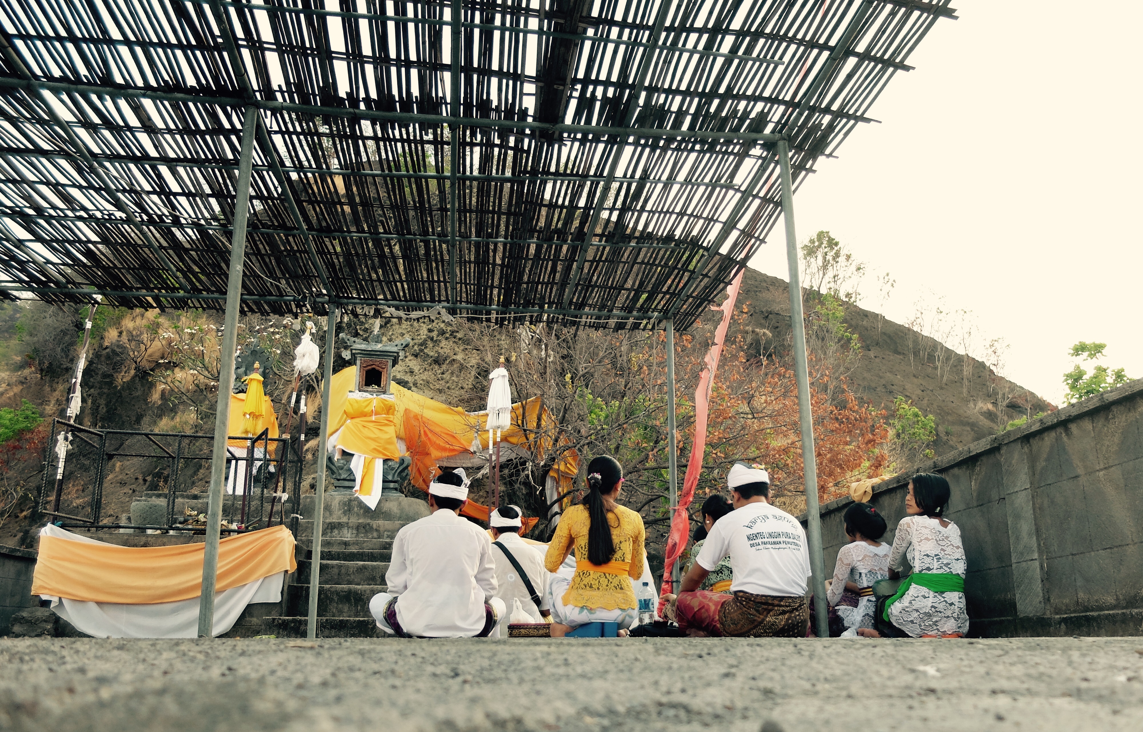 Landon was duiken en hij vertelde me dat het ongelofelijk was. De eigenaar nam ons mee op een kleine trekking, om de zon vanaf de bergen onder te zien gaan. Wat een omgeving. Een tijdje gezeten en gepraat met een Bintang. Na de mooie zonsondergang afgedaald, geproken met locals. Ik vroeg of ik aanwezig mocht zijn bij een begrafenis, die de volgende dag plaats zou vinden. Dat was oké en een van de dingen die op mijn lijstje stond om bij te wonen. We leerden hoe te spelen op een Balinees instrument gemaakt van bamboo, een soort grote xylofoon. Dit gebeurde toen we een huis passeerden en we de muziek hoorden en we bleven staan omdat het zo mooi klonk. Ze nodigden ons meteen uit en ze waren erg goed. Binnen no time werd er eten gehaald en ik was weer in de gelegenheid om mijn Bahasa te oefenen. Zo geweldig hoe alles hier vanzelf gaat, het is een soort flow. Ze volgende dag was dezelfde flow nog steeds aanwezig. Ik ontmoette een jongen die in een cafe aan de overkant van het de guesthouse werkte en vertelde hem over mijn plannen. Omdat hij zo geïnteresseerd was, vroeg ik hem voorzichtig of hij die route met mij af wilde leggen en hij stemde in. Later die dag gingen Lan en ik naar de begrafenis van een hindoeïstische meneer die erg ziek was, welke ziekte weten we niet. Het lichaam, wat in een kist lag, werd gedragen op bamboo stokken en gevolgd door een hele stoet mensen; alle inwoners van het dorp. Ze renden rond van links naar rechts en mensen langs de kant van de weg spoten het nat met een tuinslang. Bij het graf aangekomen, dacht ik eigenlijk dat ze het lichaam zouden verbranden op het water. Dat was niet zo. Er werd een aantal keer getracht het lichaam in het gat te mikken. Toen het uiteindelijk lukte drongen alle mensen rond het graf. Ik voelde me ongemakkelijk, kon ik hier wel zijn als toerist? Ik werd door een meisje wat met ons mee was uit het guesthouse steeds meer naar voren geduwd. Ik wilde het eigenlijk niet zien, wist niet wat ik aan zou treffen. Opeens stond ik letterlijk aan het hoofd. Mensen waren vrolijk en accepteerde me gewoon. Er werd geld op het lichaam geworpen en er werden kleren in het graf gelegd en andere ceremoniële attributen. Een katoenen lapje werd verwijderd en ik kreeg zijn gezicht te zien, wat nogal intens was. De meneer had op elk oog een driehoekig stukje glas en een groen blaadje van een boom. Later hoorde ik dat dat was omdat ze anders bang waren dat er een kwade geest in het lichaam zou treden. Er werden twee lappen boven het graf gehouden waar iemand rozenwater op goot, zodat het op het lichaam terecht kwam. Ik vond het heel intens. Net toen ik besloot om langzaam naar achter te deinen, werd me gezegd dat ik foto’s moest maken van het lichaam. Ik deed het heel snel in mijn hoofd wist ik dat het een hele heftige foto zou zijn. En dat is het. Maar niet bedoeld voor het internet. Op de weg terug pakte het meisje van de guesthouse mijn hand en ik voelde een vlaag van verdriet door me heen gaan. We kregen een zegening met heilig water en iedereen ging uiteen. Het was zo surreëel.